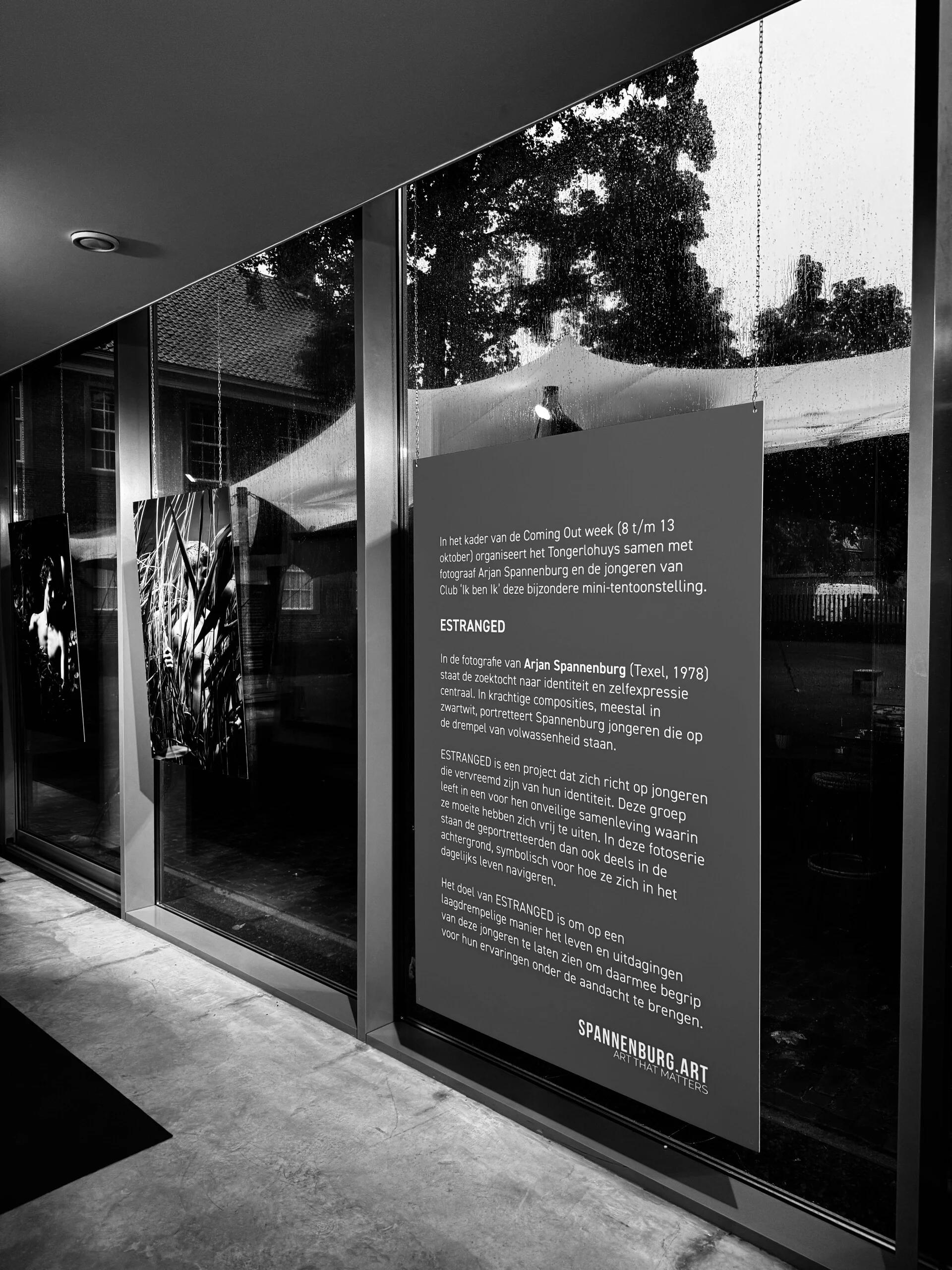 Udstillet som midtpunkt for Coming Out Roosendaal 2024, præsenterer ESTRANGED en stringent samling portrætter, der dokumenterer jagten på selv'et hos LGBTQ+ unge. Udstillingen består af 23 nøje udvalgte værker, der skildrer unge individer i øjeblikke af dyb ensomhed og modstandsdygtighed. Præsentationen, der fandt sted på Tongerlohuys, blev udvidet med specialiserede arrangementer, herunder en drag makeup workshop og aftenens teatersamarbejder, som kontekstualiserede de statiske billeder inden for en levende, åndende fejring af queer kultur. Inklusionen af ESTRANGED fotobogen lod besøgende bære fortællingen med sig ud over museets mure, og udvidede rækkevidden af Spannenburgs udforskning af den skrøbelige skønhed ved at blive sig selv.
